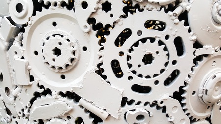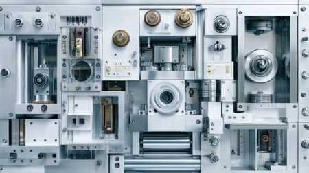 A captivating display of diverse mechanical parts and components presented in a structured arrangement, emphasizing industrial technology and engineering aesthetics.
