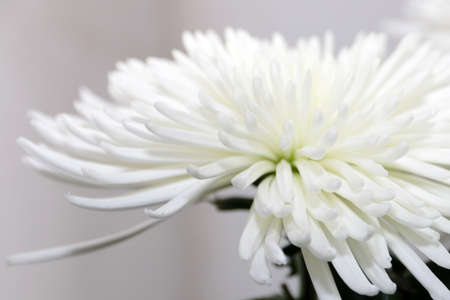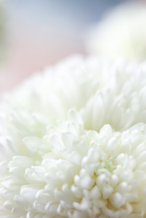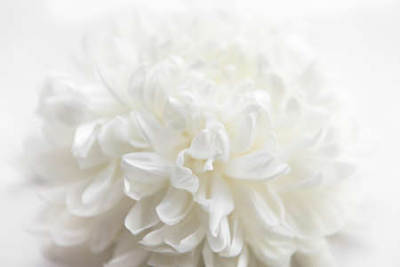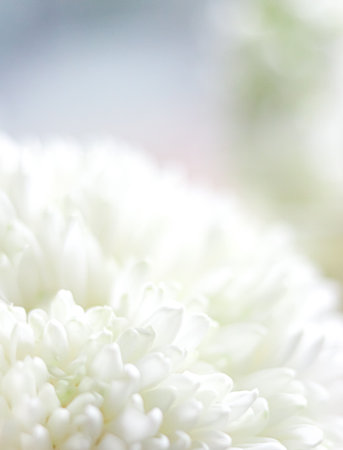 White chrysanthemum petals in a soft focus macro creating a delicate elegant floral background, concept of purity and serenity
