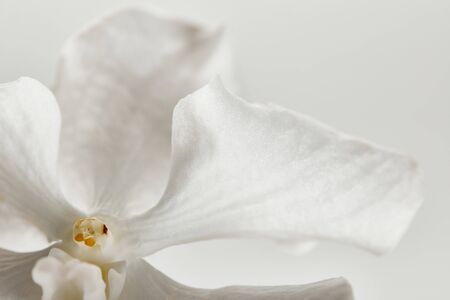 White flower on white background, macro of white petals texture. Soft image