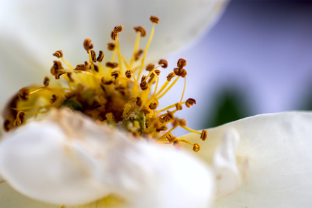 white rose with stamens close-up