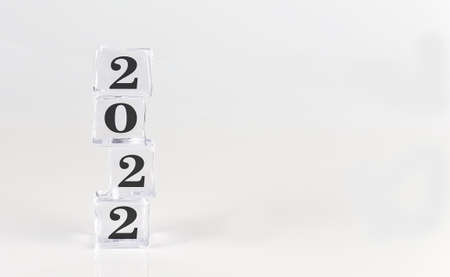 2022 white text number on white background. Resolution, plan, review, goal, start and New Year holiday concepts