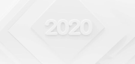 New Year greeting card - composition with 2020 year numbers, red and white, on white background. 3d illustration.