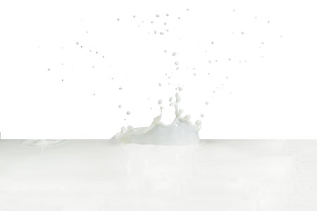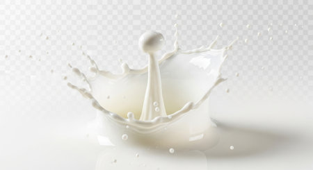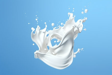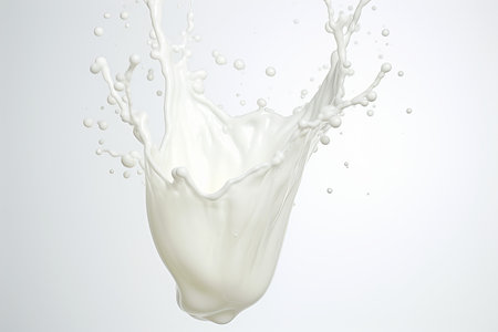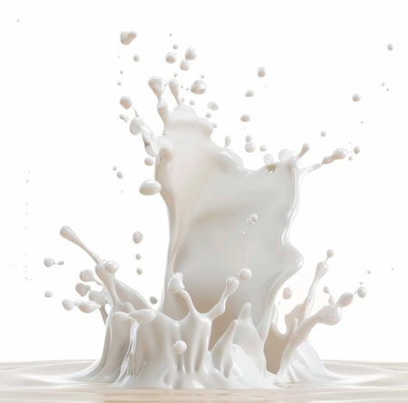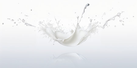 A splash of milk captured in motion. The dynamic and refreshing image is perfect for themes related to dairy, beverages, and food photography.
