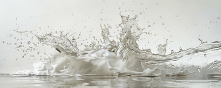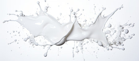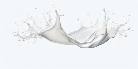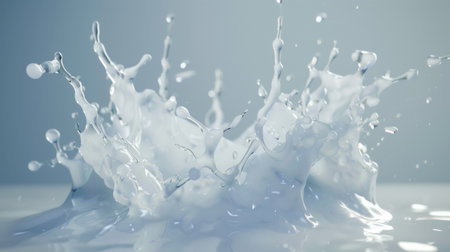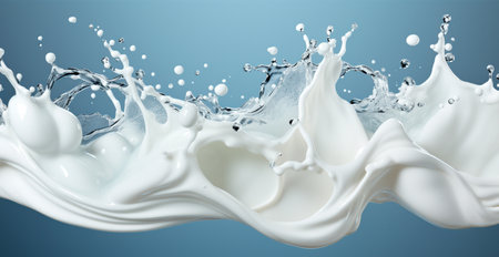 Abstract composition of white milk splashes on a textured background, capturing movement and fluidity. Perfect for themes of dairy, freshness, and creativity.