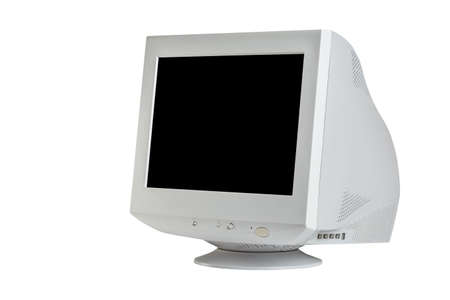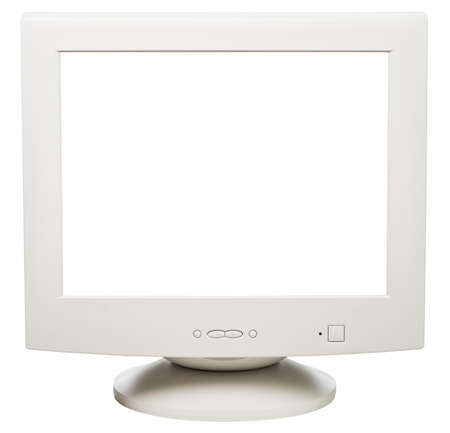 Obsolete CRT computer monitor with blank cun out screen isolated on white background