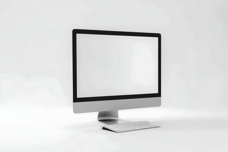 Computer display with a blank screen and a wireless keyboard on a white background