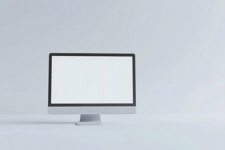Computer display with blank white screen. Front view