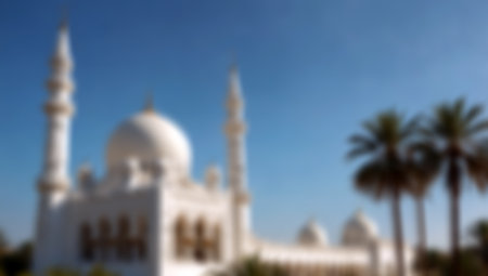 blur mosque with palm tree background, bokeh defocus