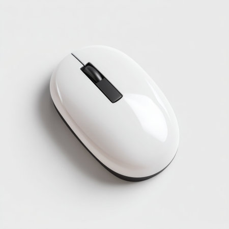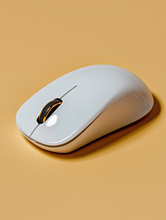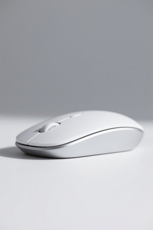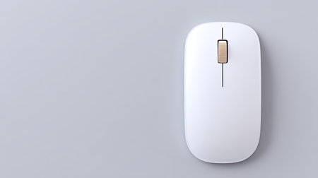 A sleek and modern wireless computer mouse showcased against a soft gray background. Ideal for enhancing office aesthetics and improving productivity in any workspace.