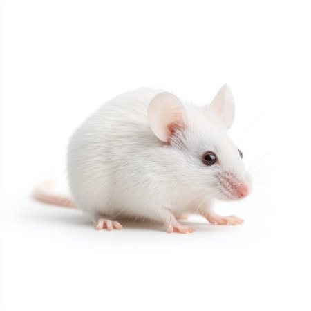 White lab mouse isolated on a clean background. Concept of animal testing, scientific research, biology study.