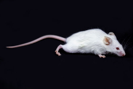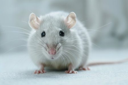 White laboratory mouse in bio lab with blurred background, ideal for scientific presentations