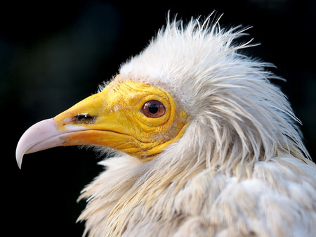 Portrait of a scavenger vulture with a dark background.