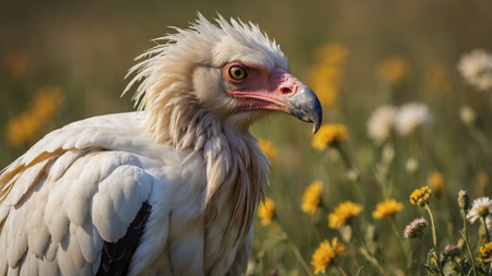 AI Generated. Majestic Egyptian vulture in a blooming meadow