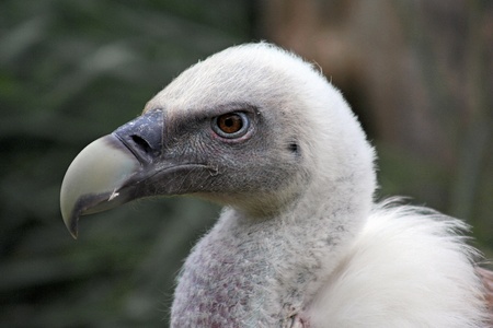 Head of an European griffon vulture in a forest