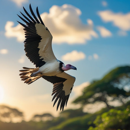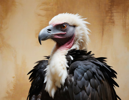 the vulture illustration, set against a serene background, exudes a peaceful and calm feeling, showcasing the majestic bird's gentle side, often overlooked in favor of its scavenging reputation, highlighting the importance of coexistence with nature and wildlife conservation. ai generated
