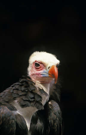 White Headed Vulture, trigonoceps occipitalis, Portrait of Adult, Kenya