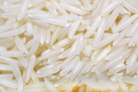 White long rice background, uncooked raw cereals, macro, close up, low depth of field