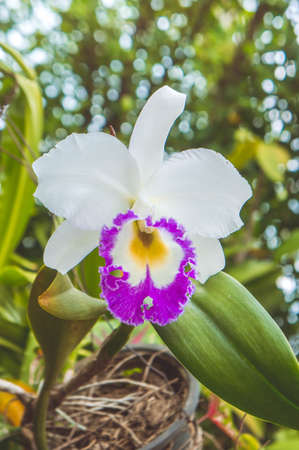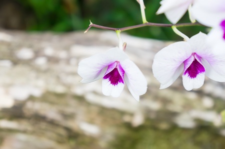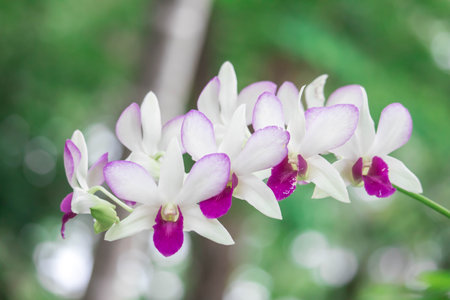 White orchids with purple edge in the garden Taken close-up , Bangkok Thailand