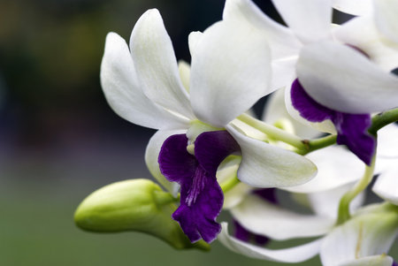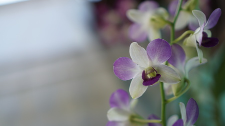 Fresh orchid flower white and purple violet color, beautiful flower Bangkok Thailand.
