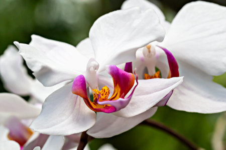 White orchid flowers in garden. close-up. Phalaenopsis variety.