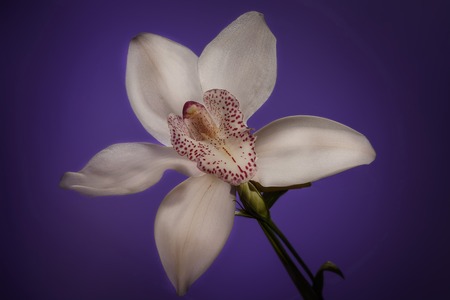 The High-resolution orchid flower photograph using stack focus technique on a pastel background, suitable for editing.