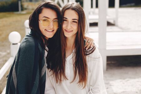 Two pretty girls in a summer park