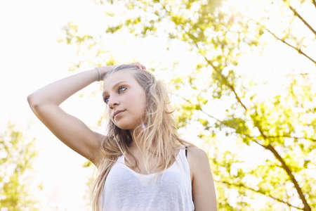 Young woman with hand in hair