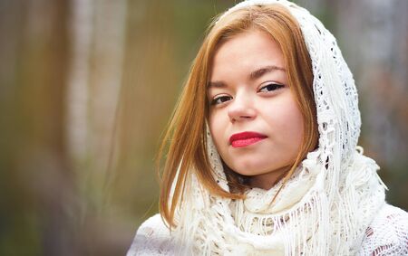 young beautiful girl in a white scarf