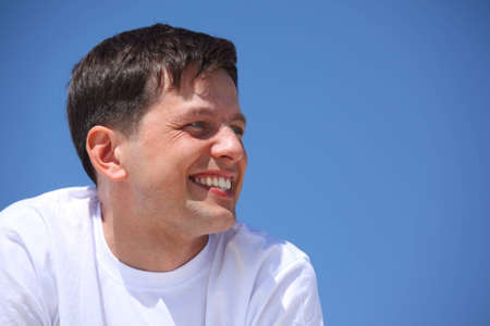 smiling guy against blue sky