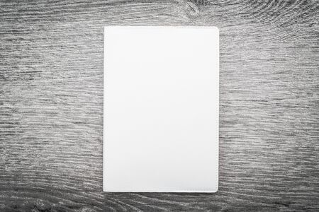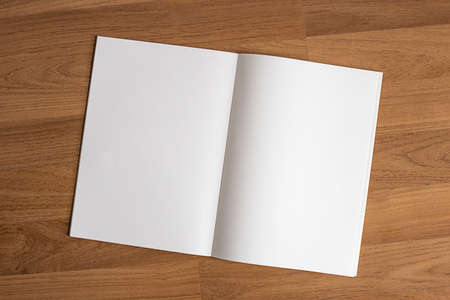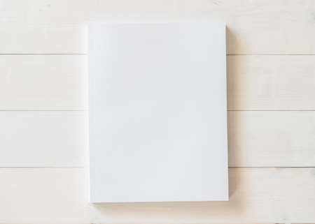 Mock-up book cover blank A4 size paperback mockup for catalog, magazine booklet, portfolio, menu design template with page front side on white surface on wood table