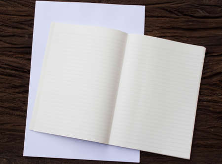 Blank Paper Book On the wood working table Wait for creative time to start , paper work for text and copy space