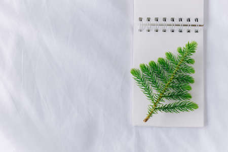 Top view of blank paper desk spiral calendar on dull white texture background, Template for design