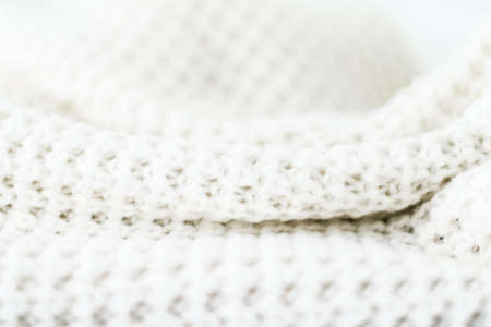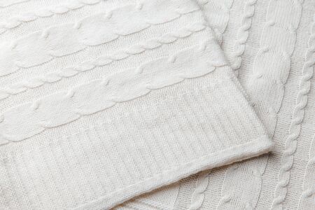 Knitwear, fabric textures and handmade items concept - Warm knitted clothes, soft and white