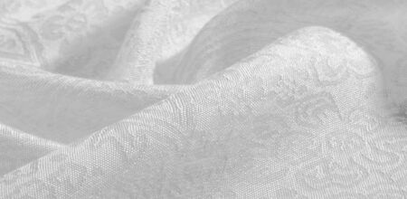 The texture, background, pattern, white silk fabric is textile. Its properties differ from woven material in that it is more flexible and easier to design.