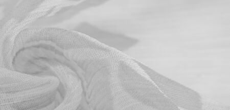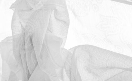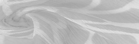 The folds of white chiffon. Abstract composition. Waves of fabric. Pattern from the waves of the curtain. Abstract soft chiffon texture background