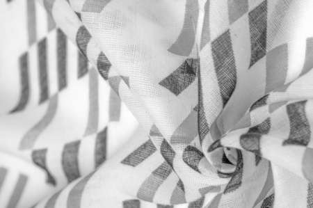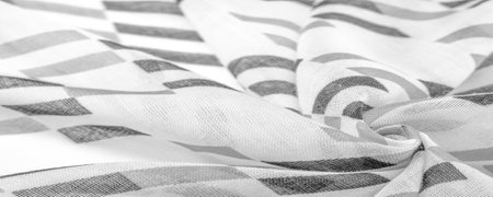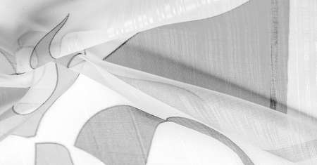 thin knitted fabric - light transparent, black and white, monochromatic geometric colors, similar to a veil made of thin viscose silk. organza pattern.
