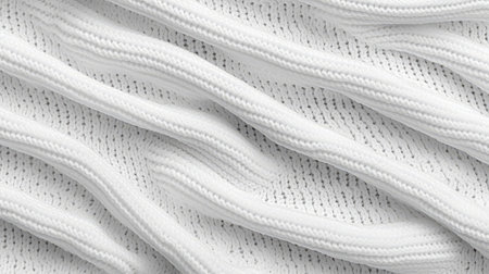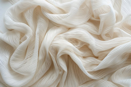 A close-up of textured white fabric featuring flowing waves and beautiful patterns. Ideal for showcasing textile design or elegant backgrounds in visual art.