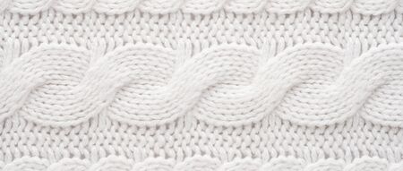 White knitted texture and background, close up.
