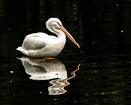 Enchanting Moments: The Elegant Dalmatian Pelican Adorning the Dark Lake in the Park