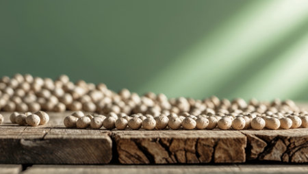 AI Generated. Natural Organic Pellets on Wooden Surface with Green Background