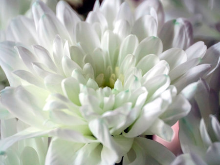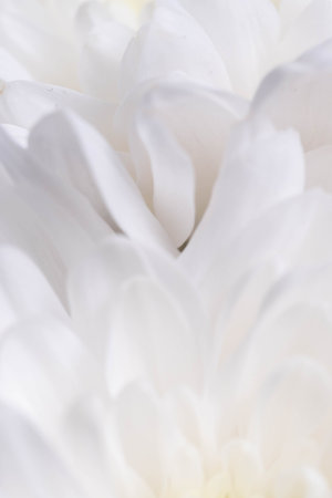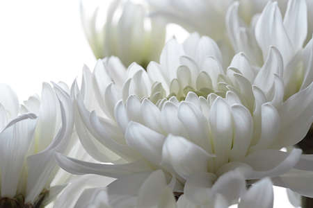 White Chrysanthemum flowers close up, macro shot as pure innocent white nature background
