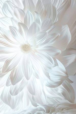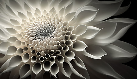 A stunning close-up of a dahlia, showing its intricate details and monochromatic palette. The image emphasizes texture and form.