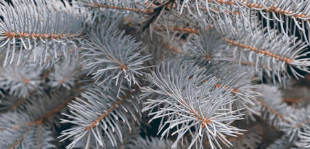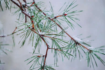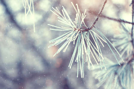 Coniferous long needles of a winter tree