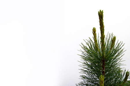 Pine tree branch isolated on white background with copy space for text