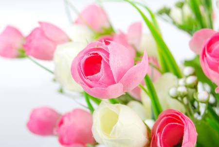 Bouquet with pink and white roses on white background