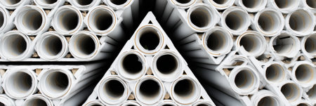 High-resolution image of multiple white pipes arranged in a seamless pattern. Ideal for architectural and industrial projects, showcasing modern design and structure.