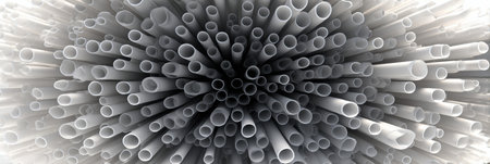 A dynamic close-up of assorted plastic pipes showcases their intricate arrangement and smooth surfaces, offering endless design possibilities and industrial inspiration for various applications.
