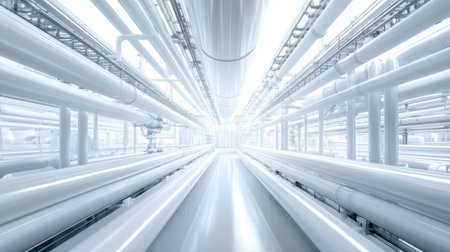A striking industrial corridor featuring bright lighting and smooth pipelines provides a modern and high-tech atmosphere, showcasing advanced engineering design.