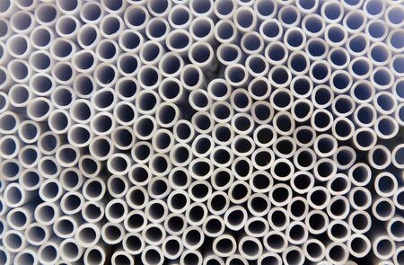 background of colorful big plastic pipes used at the building site close-up frontal view
