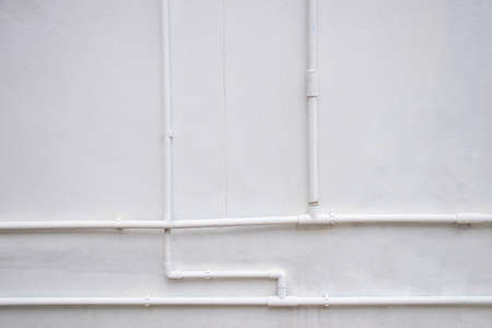 This image showcases two white pipes against a textured wall, creating shadows. The minimalist composition emphasizes simplicity and industrial charm for various projects.